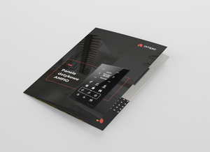 - Broszura trójdzielna w formacie A4 przedstawiająca wszystkie modele paneli dotykowych Ampio.